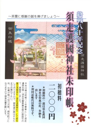このほど終戦80年に際する限定朱印帳を奉製、当社にて10月1日より頒布しております。