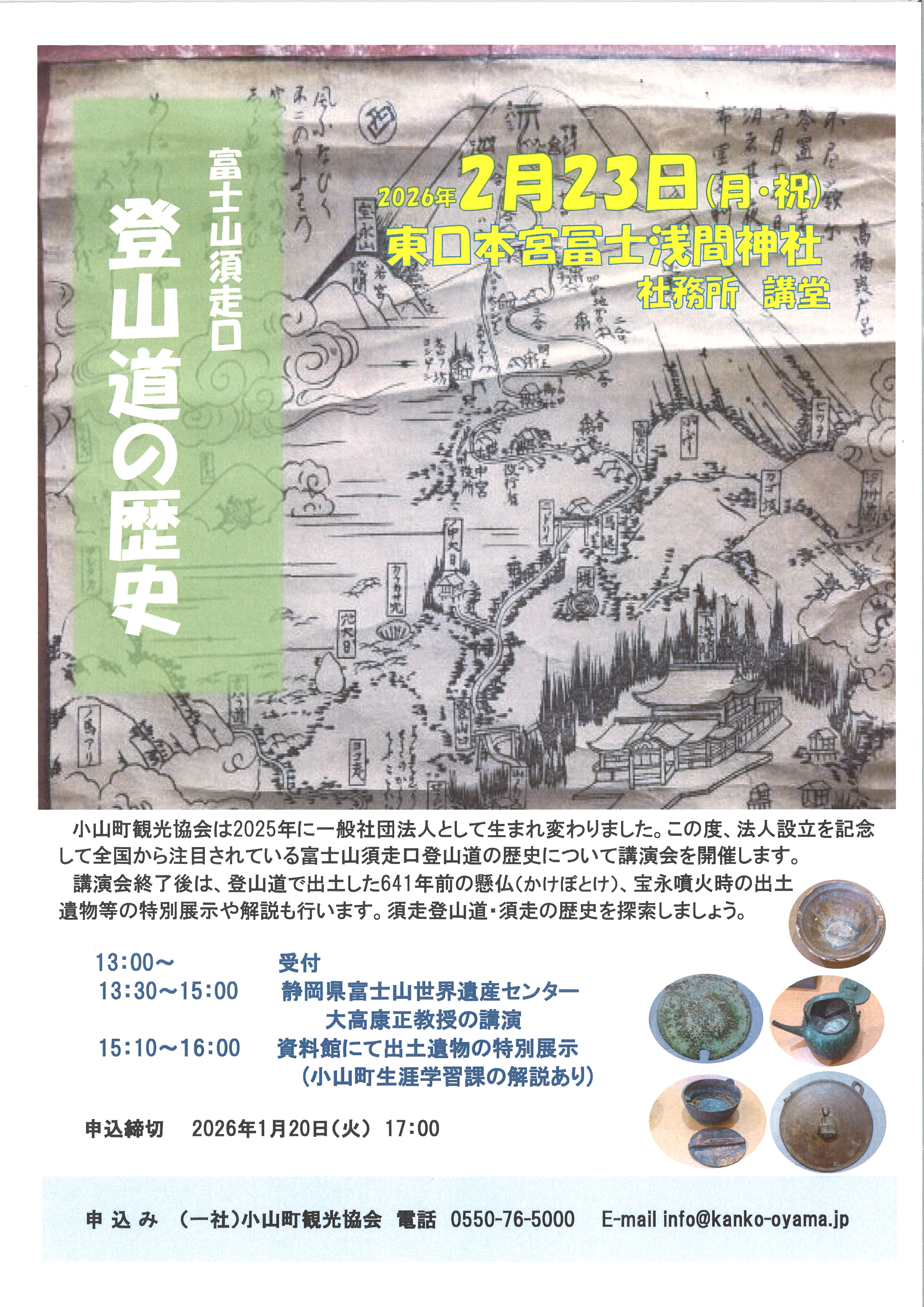詳細は画像を御確認いただき、詳細は小山町観光協会までお問い合わせ下さい。