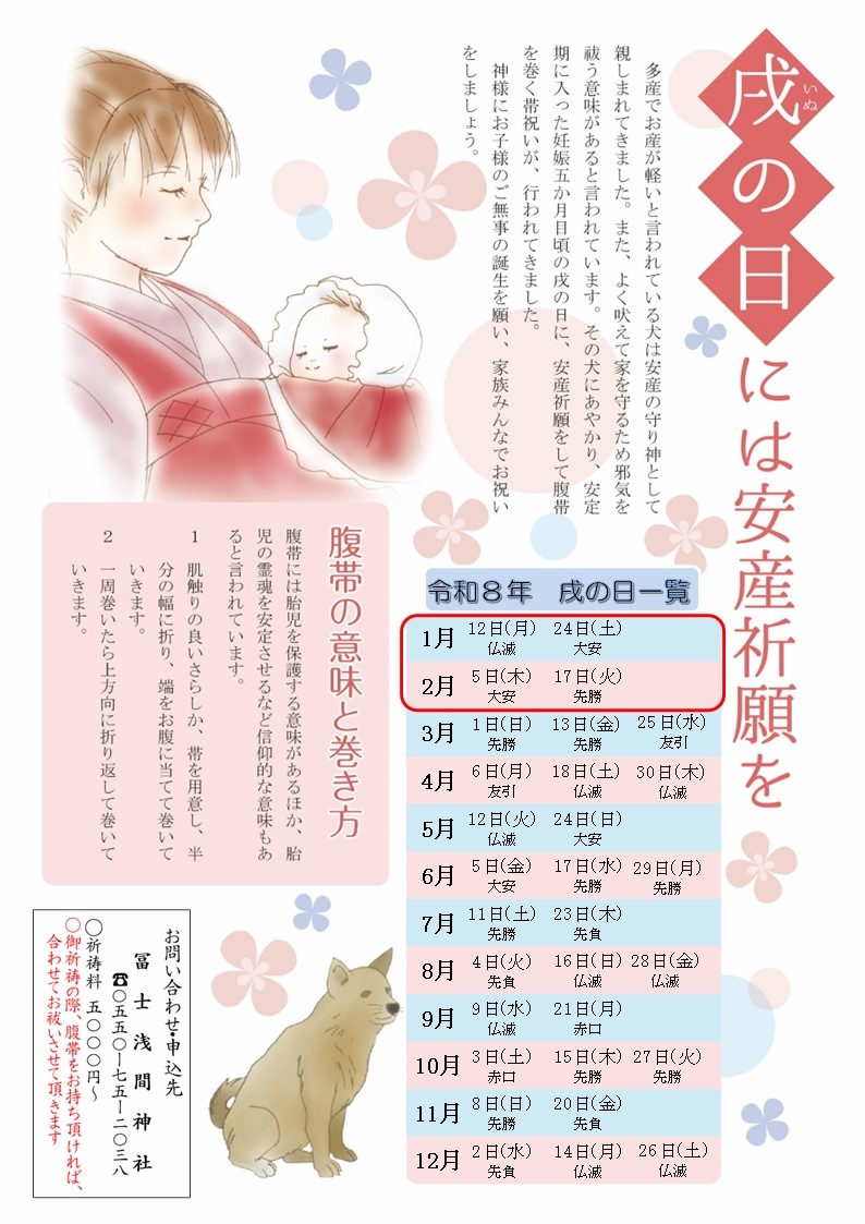 1・2月の戌の日は、画像の通りとなります。