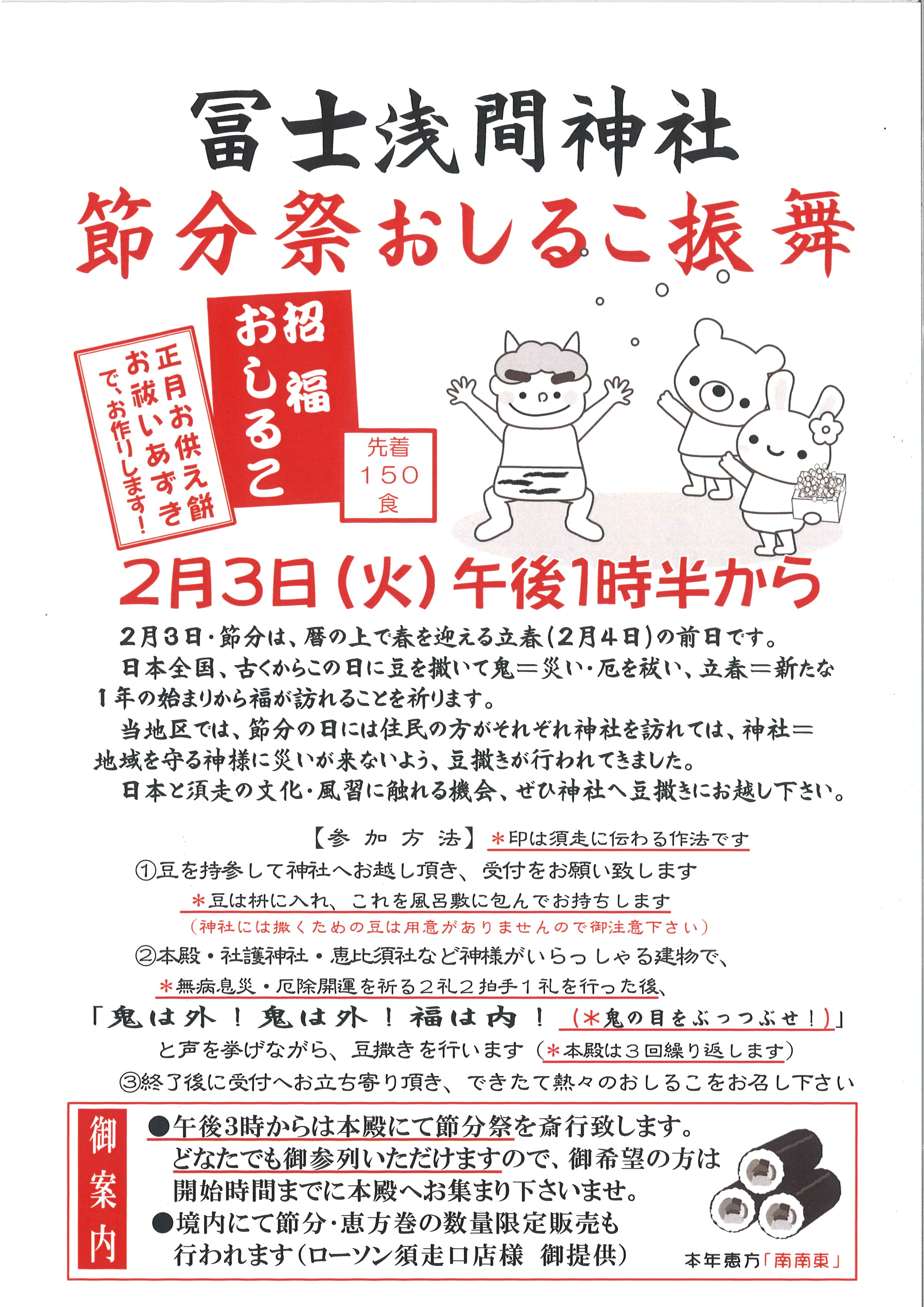 ①1月31日(土)午後3時半 年男年女 豆まき・福餅まち