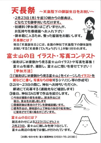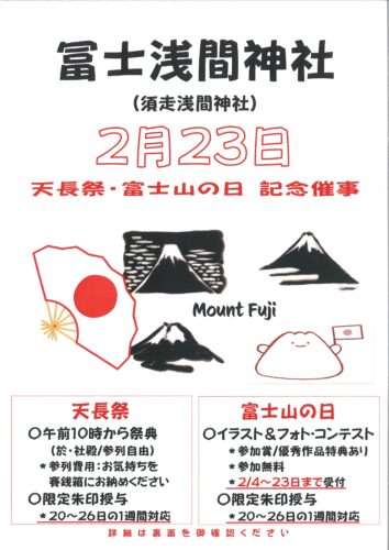 令和8年 2月23日 天長祭・富士山の日 記念催事の御案内(2.2更新)