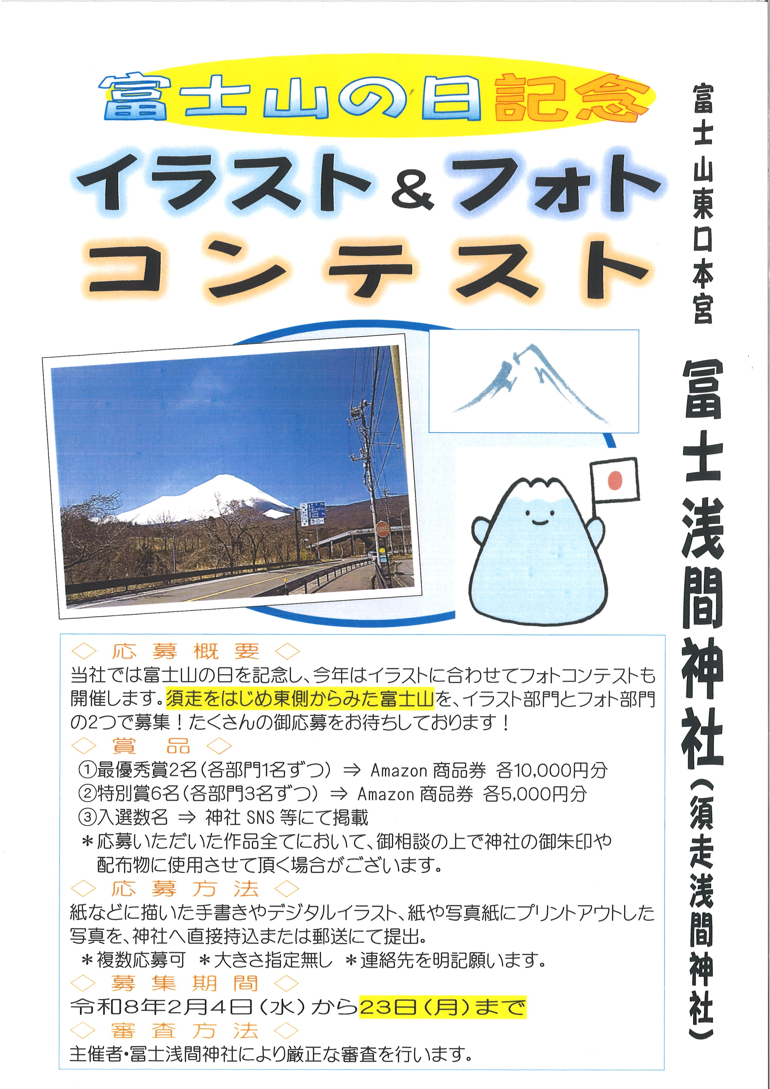内容は、「須走からみた富士山」の「イラスト」「写真(フォト)」の募集です。
